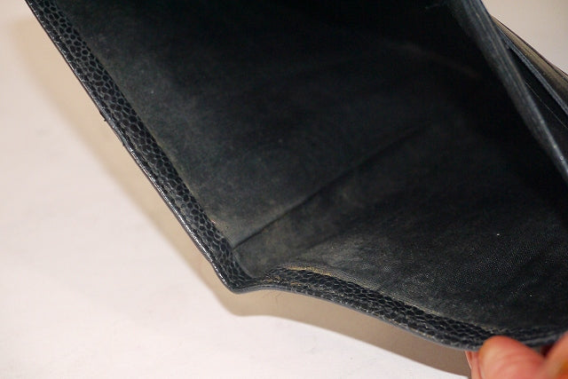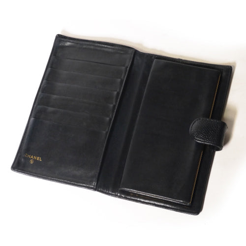 シャネル  長財布ガマ口(黒)キャビアスキン