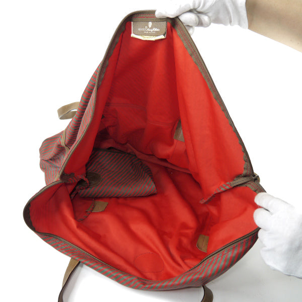 オールドグッチ  Rigateライン折り畳みボストン(赤ストライプ・大)