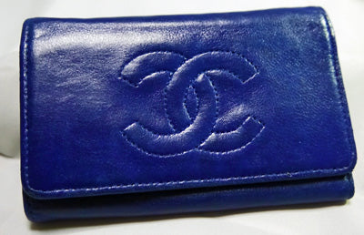 CHANEL ラム革キーケース(青)