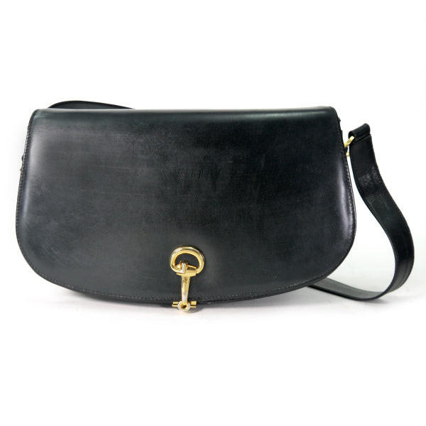 オールドグッチ代表作!ビット留め具半円ワンショルダー(黒/赤)