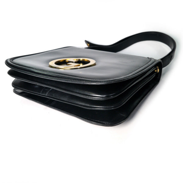 オールドグッチ  代表作!インターロッキング 総革ワンショルダー(黒)