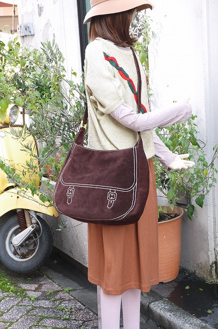 ロベルタ 騙し絵 スエード 茶ショルダー
