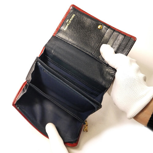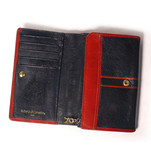 Roberta 総皮2つ折れ財布(赤×紺)