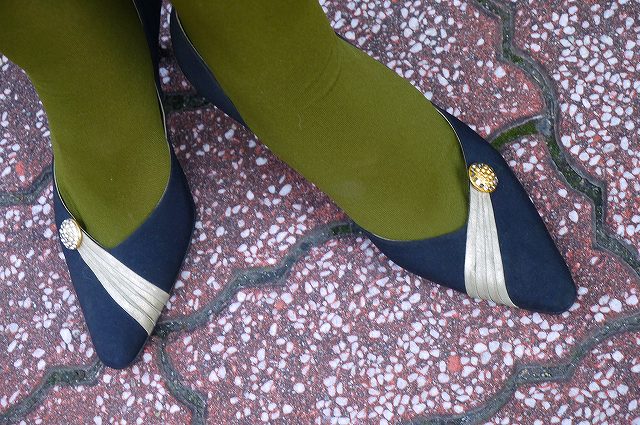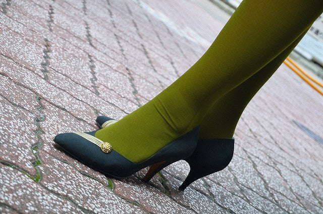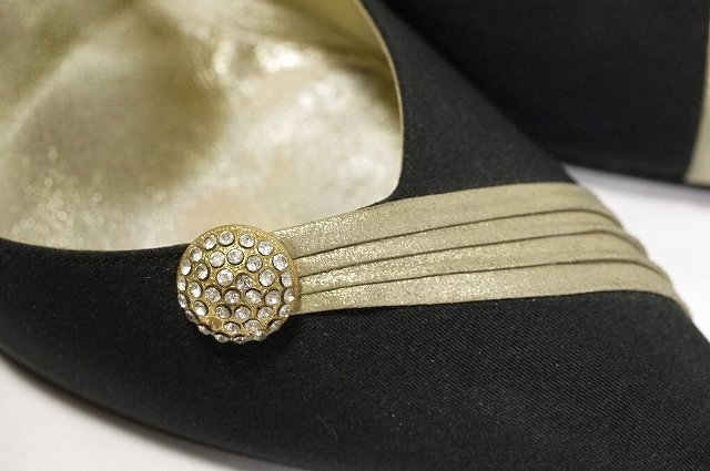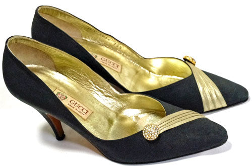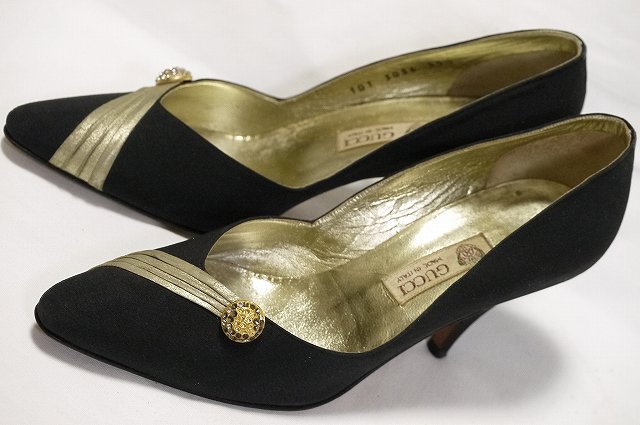 オールドグッチ  パンプス35 2/1 黒黒×ゴールド