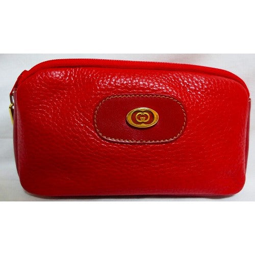 オールドグッチ 赤型押し化粧ポーチ Made in Italy サイズ(約 cm)横16 縦9 奥2 外装は美品 内装はベタや粉を全て取り除きましたので、いつまでも清潔にお使い頂けます!