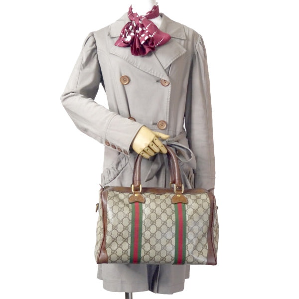 オールドグッチ レア!Wシェリーラインボストン(茶・中)