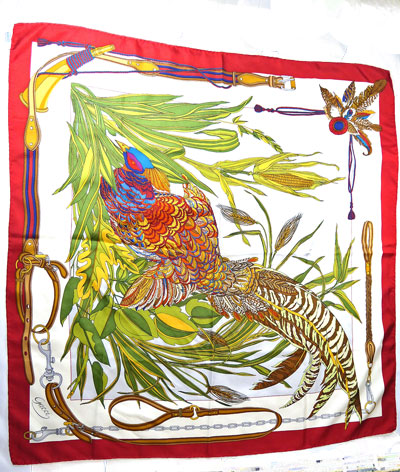 OLD Gucci シルクスカーフ(鳥柄 赤系)