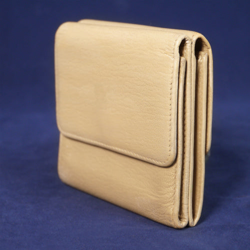 SS-320C シャネル ココマーク3つ折れベージュ財布 上品な明るいベージュカラー ココマークが可愛い! コンパクトなので小さなバックにも! カーフスキン Made in France サイズ(約 cm)横10 縦10 奥2 小銭入れ1(内装2分割) 札入れ1 カード入れ6