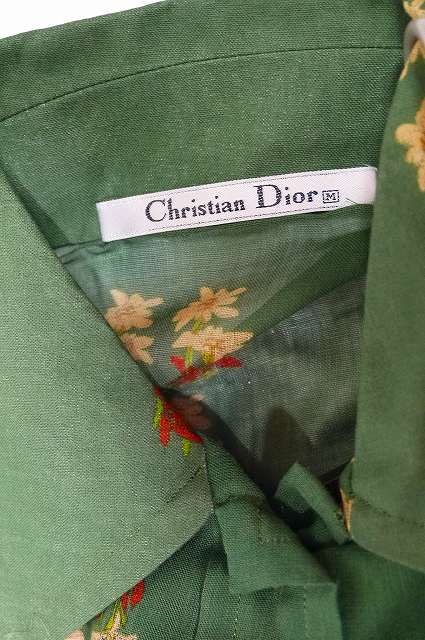 クリスチャンディオール Christian Dior 花柄ブラウス グリーン