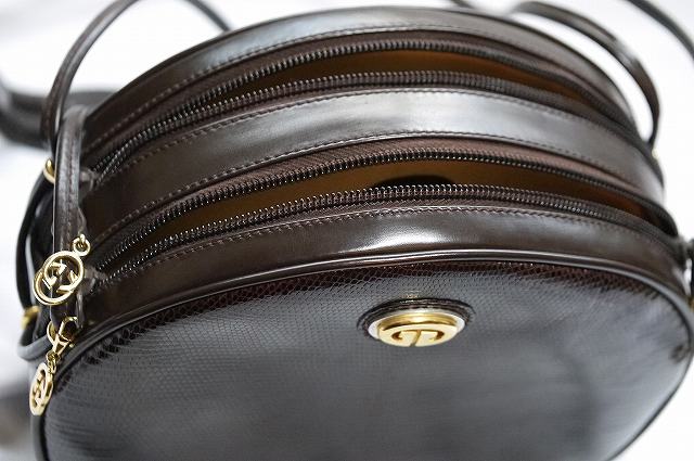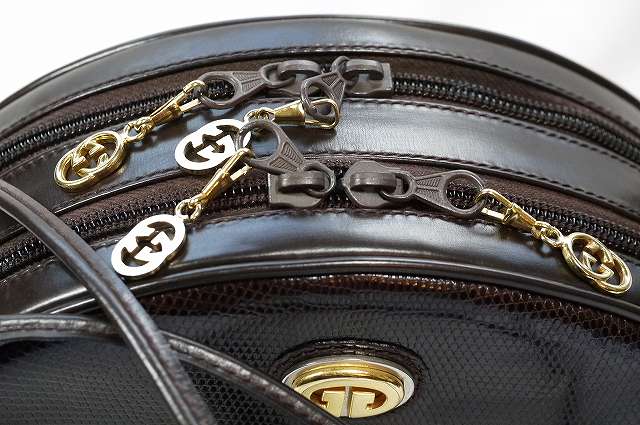 オールドグッチ チャーム付き 半円ショルダー 茶 型押し牛レザー 細かい鱗模様とツヤのある生地感が上品です(^^)/ 華奢なWストラップが繊細で女性らしい雰囲気 2層式で荷物が分けやすい便利な作り 上品な黒に近いダークブラウン Made in Italy サイズ(約 cm)横22 縦16 奥8 ショルダー110(斜めがけはかなり短いです) 内装 ファスナーで2分割 内装も総皮 外装・内装ともに美品 GS-270B ジッパーにぶら下がる4つのチャームがキラキラ光って華やか! GS-270B-2 GS-270B-8