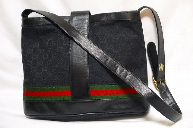 OLD Gucci  G金具バケツ型ショルダー(黒キャンパス)