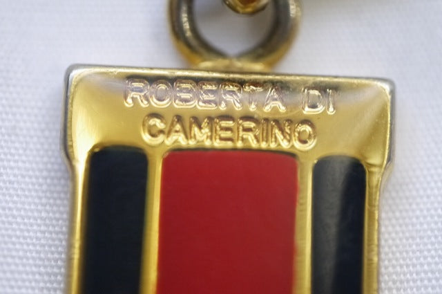 ロベルタ ディ カメリーノ キーホルダー Rチャームが揺れるロベルタのキーホルダー ゴールドに鮮やかなカラ—がかわいい ゴールド(鍍金)×赤×ネイビー Made in Italy サイズ(約 cm)全長12 美品 RB-055