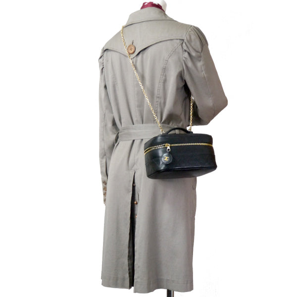 ヴィンテージシャネル チェーン付ビコローレ ココチャームバニティバッグ(黒/ラムスキン)