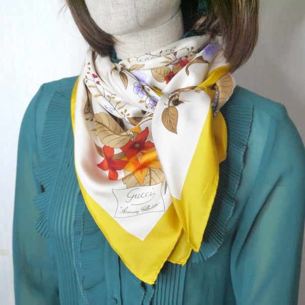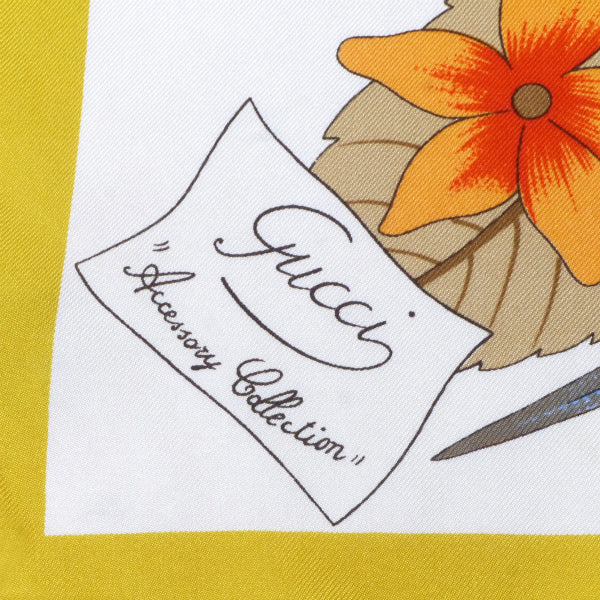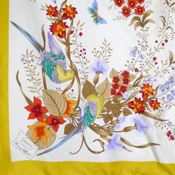 OLD Gucci ボタニカル柄シルクスカーフ(黄色)