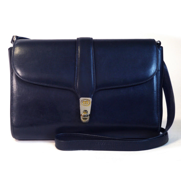 GS-961B オールドグッチ 総皮ミニクラッチ&ショルダー(濃紺) 総皮(内装も) ショルダーを取り外して人気のクラッチバッグとしても! 小さいので バッグインバッグ でポーチでも使えます! Made in Italy サイズ(約 cm)横22 縦14 奥5 ショルダー長さ93or96(2種類ワンタッチ切り替え 斜めがけは短くワンショルダーがお勧めです) 外装・内装ともに美品 GS-961B-10
