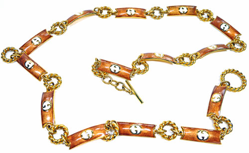 オールドグッチ OLD Gucci  チェーンベルト(茶) ゴールド茶 サイズ(約 cm)全長100 幅1(茶の長方形)〜2(ゴールドの丸型) ウエスト周り 90cmまで 美品 ジュエリーのクリーニング方法 guccibelt17-3 guccibelt17-10 guccibelt17-11