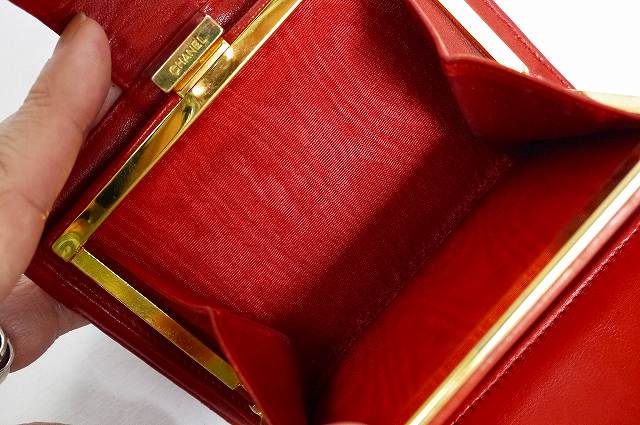 オールドシャネル CHANEL ラム革 財布(赤・がま口) 大きなココマーク カード・シール有 Made in France サイズ(約 cm)横12 縦9 奥1.5 小銭入れ 1(がま口) 札入れ1 カード入れ3 マルチポケット3