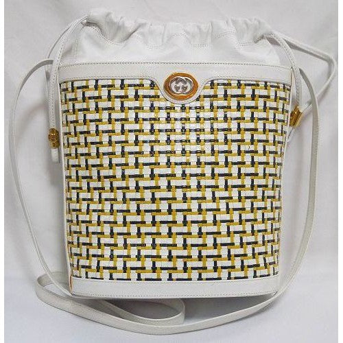 OLD Gucci 編込みショルダーバケツ型(白×黄×紺)