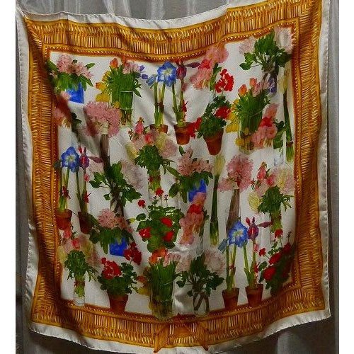 オールドグッチ シルク100% スカーフ Made in Italy 白 花柄 ボタニガル柄 サイズ(約 cm)横86 縦86 スカーフの結び方 内装、外装ともに美品