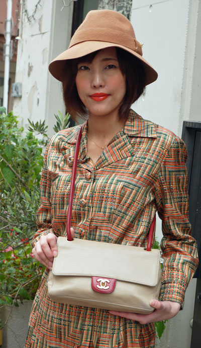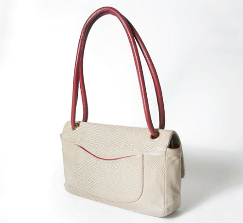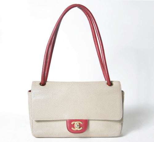 OLD CHANEL パイピングキルトショルダー(赤/ベージュコンビ)