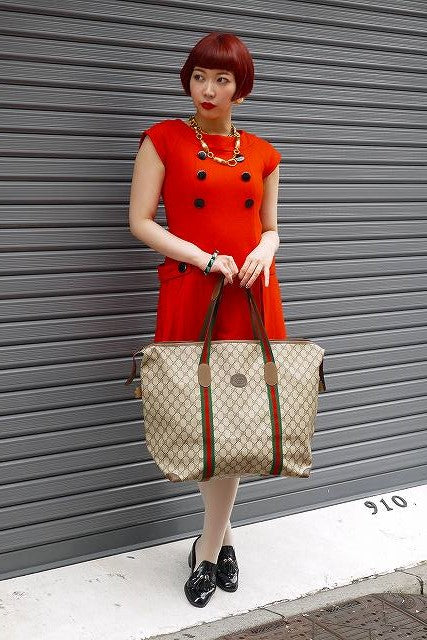 OLD Gucci 大型ボストン型軽量トートバッグ(茶)