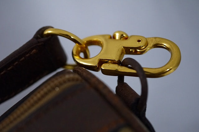 GB-035C-10 オールドグッチ 横長2ウエイボストン(茶) 濃い目の茶色 ワンタッチで留めてショルダーとしても! オールドグッチ チャーム(ゴールド)も付いています! →詳細 Made in Italy サイズ(約 cm)横32 縦20 奥12 ショルダー93(斜めがけ不可) 内装ファスナーポケット1 安心の布張り 外装・内装ともに美品 GB-035C