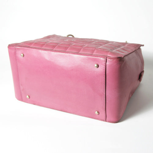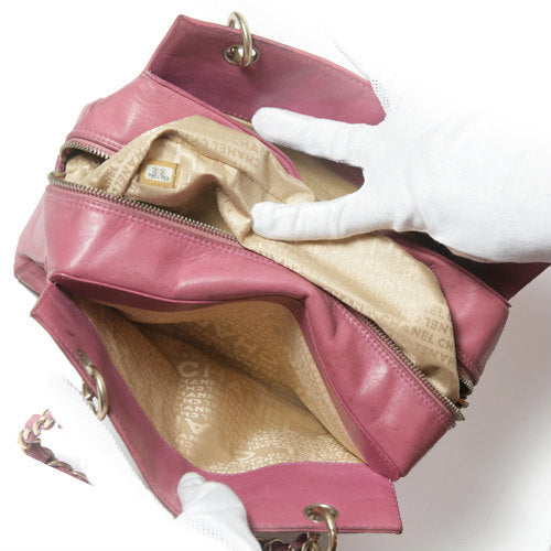 SS-345P シャネル チョコバーチェーンショルダー(ピンク) ヴィンテージ ラムスキン 肩掛けワンショルダー Made in France サイズ(約 cm)横24 縦18 奥13 ショルダー長47 内装 布張り ファスナーポケット1 外ポケット2 外装・内装ともに美品