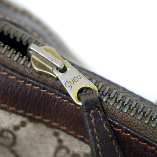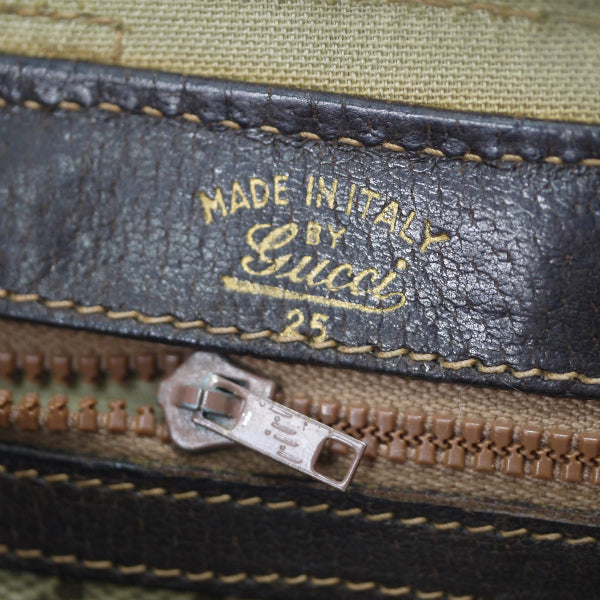 本品は1980〜83年頃に製造された、グッチの高級ビジネスラインの中でも希少な構成を持つモデルです。メインファスナーには「Gucci」ロゴ刻印入りの金属ジッパー、内ポケットにはスイス製ririジッパーを使用し、細部にまで贅を尽くしたクラフトマンシップが光ります。GGキャンバスと肉厚なレザー、象徴的なウェブラインの組み合わせが、現代にはないクラシカルな重厚感を放つ逸品です。