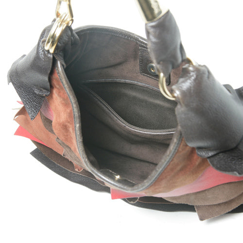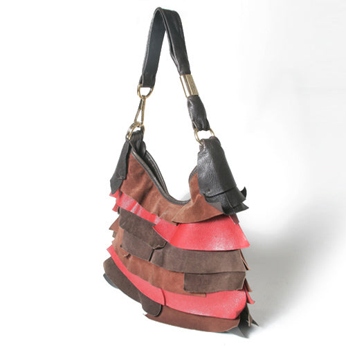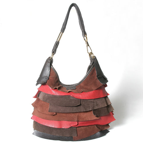スエード×革 フリル 赤、茶系