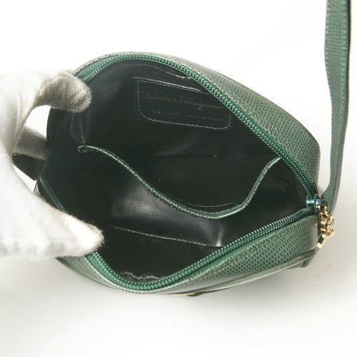サルバトーレ フェラガモ リザード型押しリボンショルダー(緑) ヴァラ(Vara)