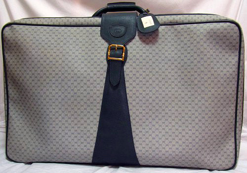 オールドグッチ 大型スーツケース(青) マイクロGG 人気のネイビー 南京錠(鍵2個)・皮製キーケースとネームプレート付き 男女兼用(ユニセックス) Made in Italy サイズ(約 cm)横73 縦45(ハンドル含まず) 奥21 1週間以上の旅行にピッタリな余裕な大きさ。 外装・内装 新品同様の美品! →詳細ブログ(他画像)
