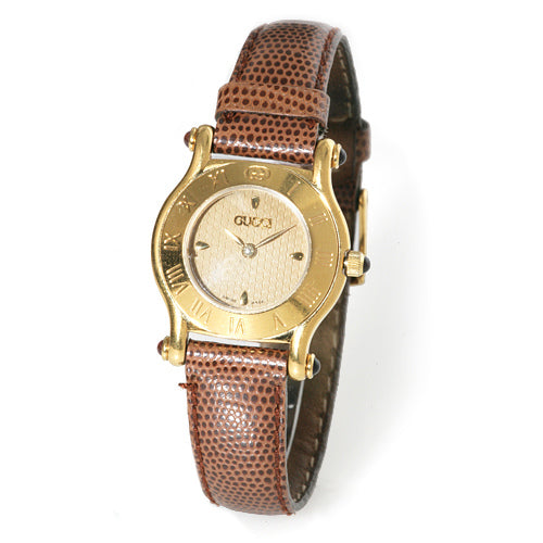 オールドグッチ ギリシャ数字 石付き腕時計(茶)