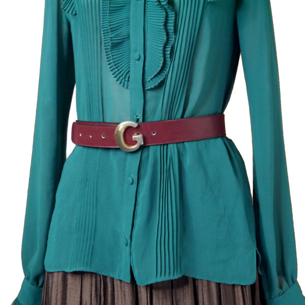本革 レザー赤茶色 ボルドーワイン/ゴールドバックル
