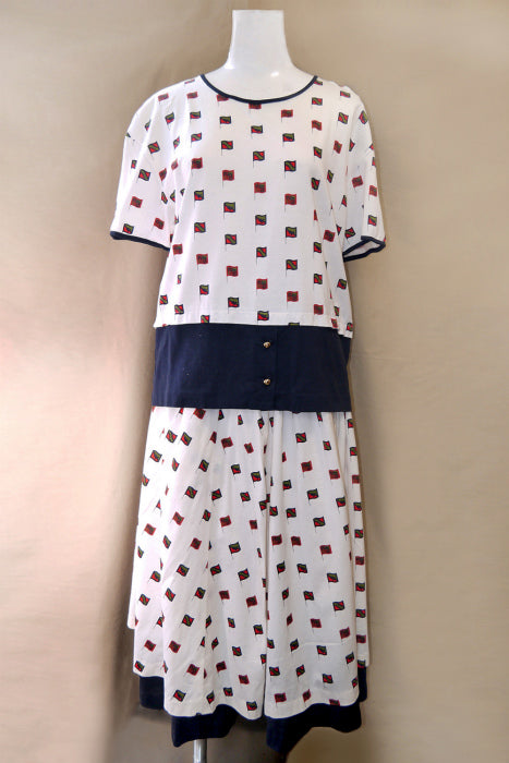素材 綿100% サイズ M トップス 肩幅42(パフスリーブ) 総丈64 ウエスト63  スカート丈75