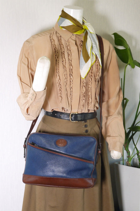 OLD Gucci 総皮コンビカラーショルダー(紺)