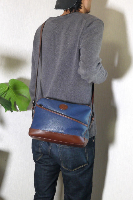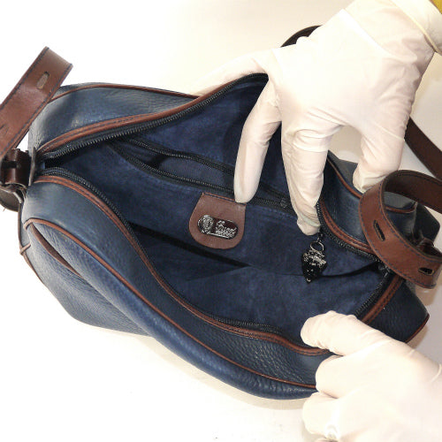 オールドグッチ 総皮コンビカラーショルダー(紺)