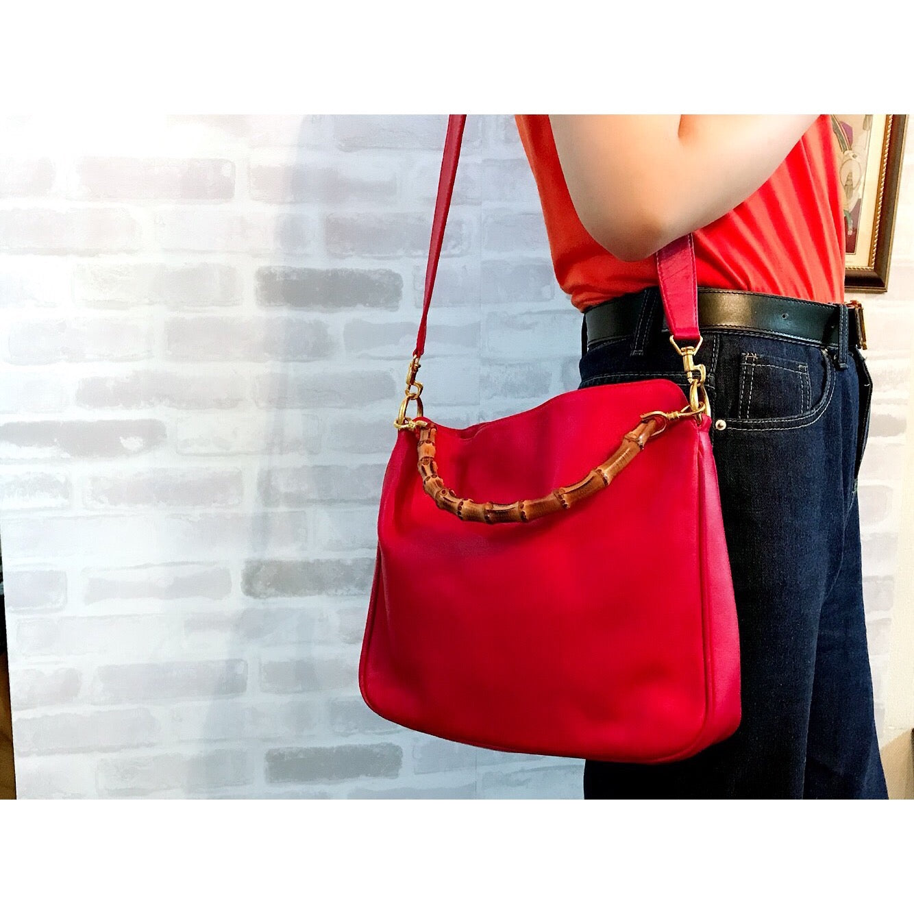OLD Gucci ホーボー2Wayバンブーバッグ(赤・中)