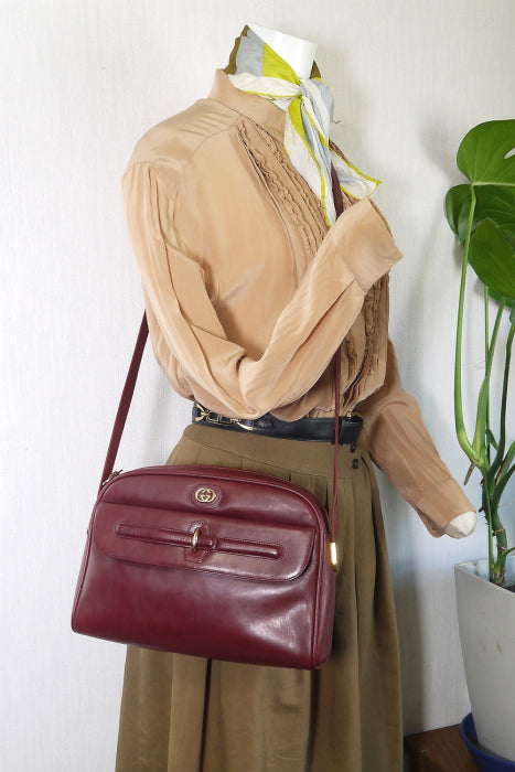 OLD Gucci 外ポケ付ボルドーショルダー(総皮)