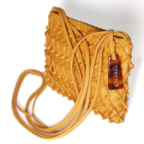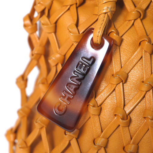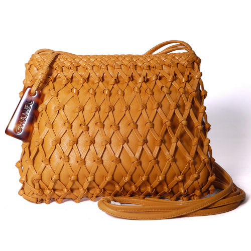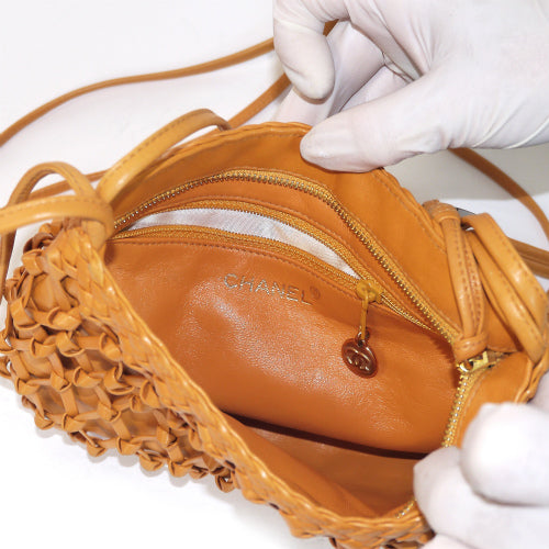 オールドシャネル  皮編み込みポシェット(キャメル)