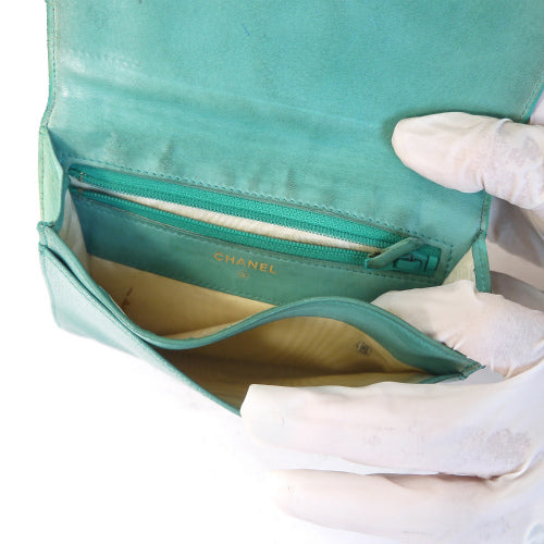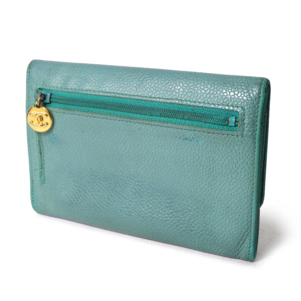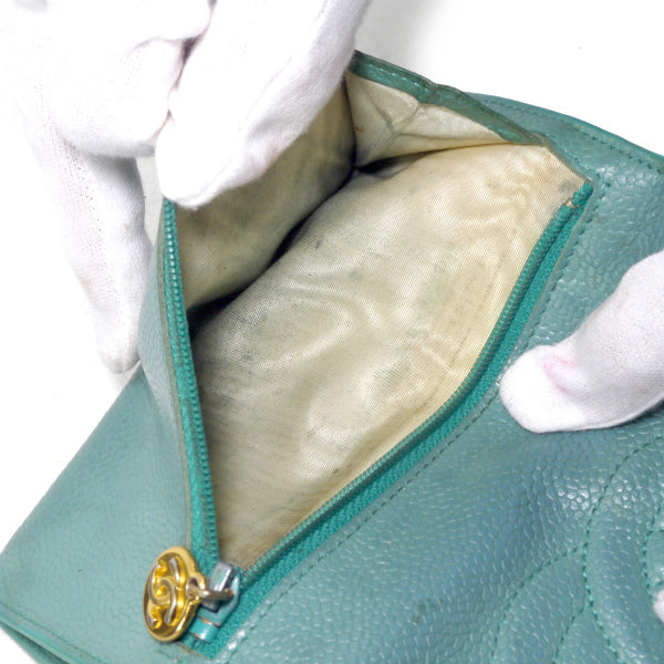 OLD CHANEL <訳アリ> キャビアスキンココマークステッチ折財布(水色)