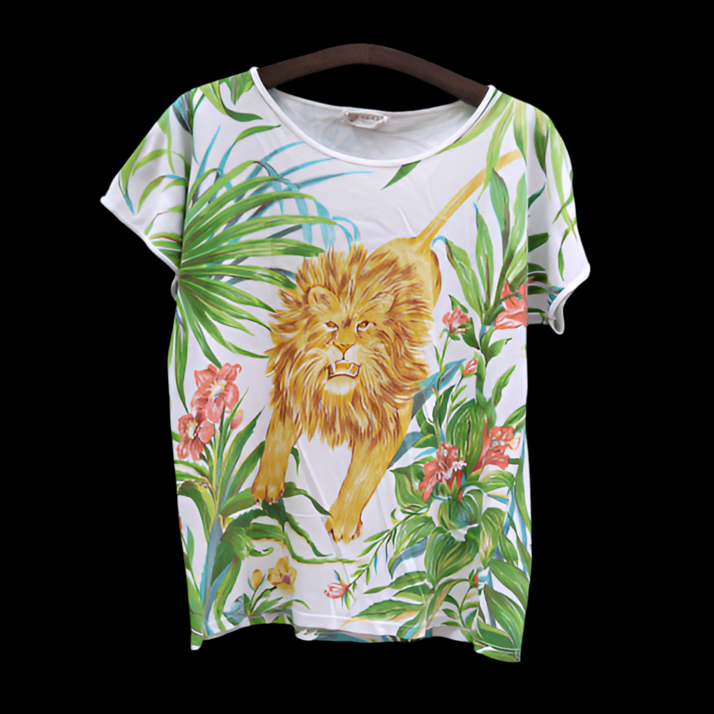 ライオンと草原が大きく描かれたインパクト大の一着です