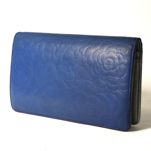 CHANEL  カメリア長財布(青)