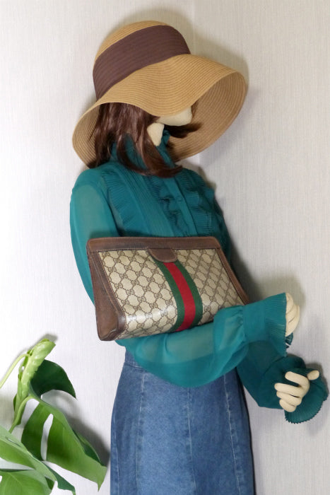 OLD Gucci PARFUM シェリークラッチバッグ(茶)