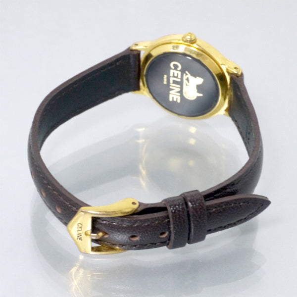 オールドセリーヌ ラウンド馬車ロゴフェイス腕時計(濃茶)