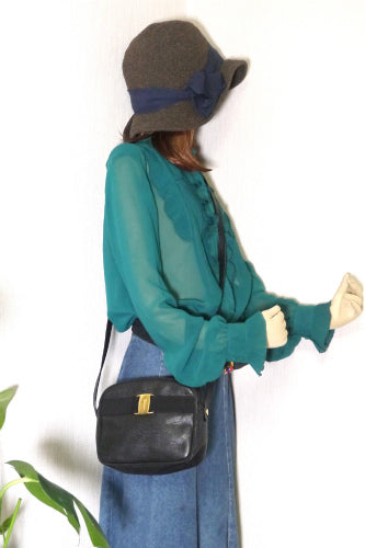 サルバトーレ フェラガモ リザード型押しリボンショルダー(黒)