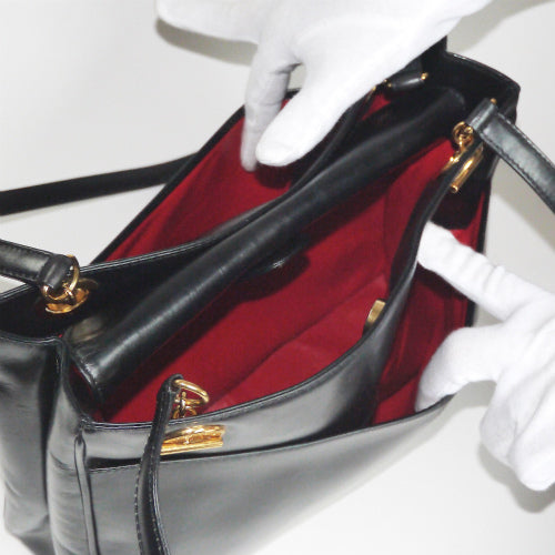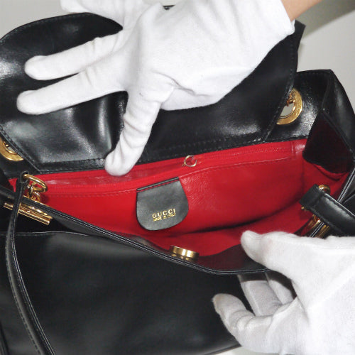 オールドグッチ 黒本革ビジネストート(内装赤)
