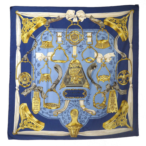 HERMES 大判カレ スカーフETRIERS(青)