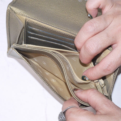 内装はゴールド革×ココマークが素敵なベージュ生地