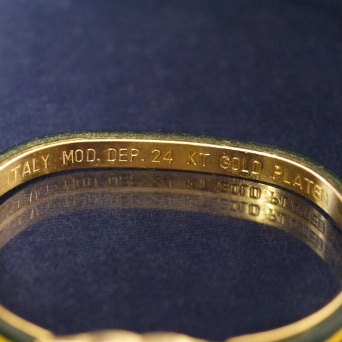 24金メッキ仕上げに、モスグリーンの革にゴールド縄目のデザイン