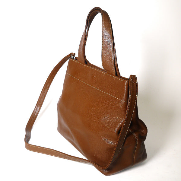 SS-074C SS-074C-2 オールドシャネル  ショルダー付ハンドバッグ(茶・キャビアスキン) ショルダーがワンタッチで外せる便利な2Way! Made in Italy 本体シリアルシール有り サイズ(約 cm)横28 縦26 奥14 ショルダー98(かなり短めの斜めがけ) 内装 布張り ファスナーポケット1 ポケット2 入り口 ココの捻り留め具 外装・内装ともに美品 SS-074C-10